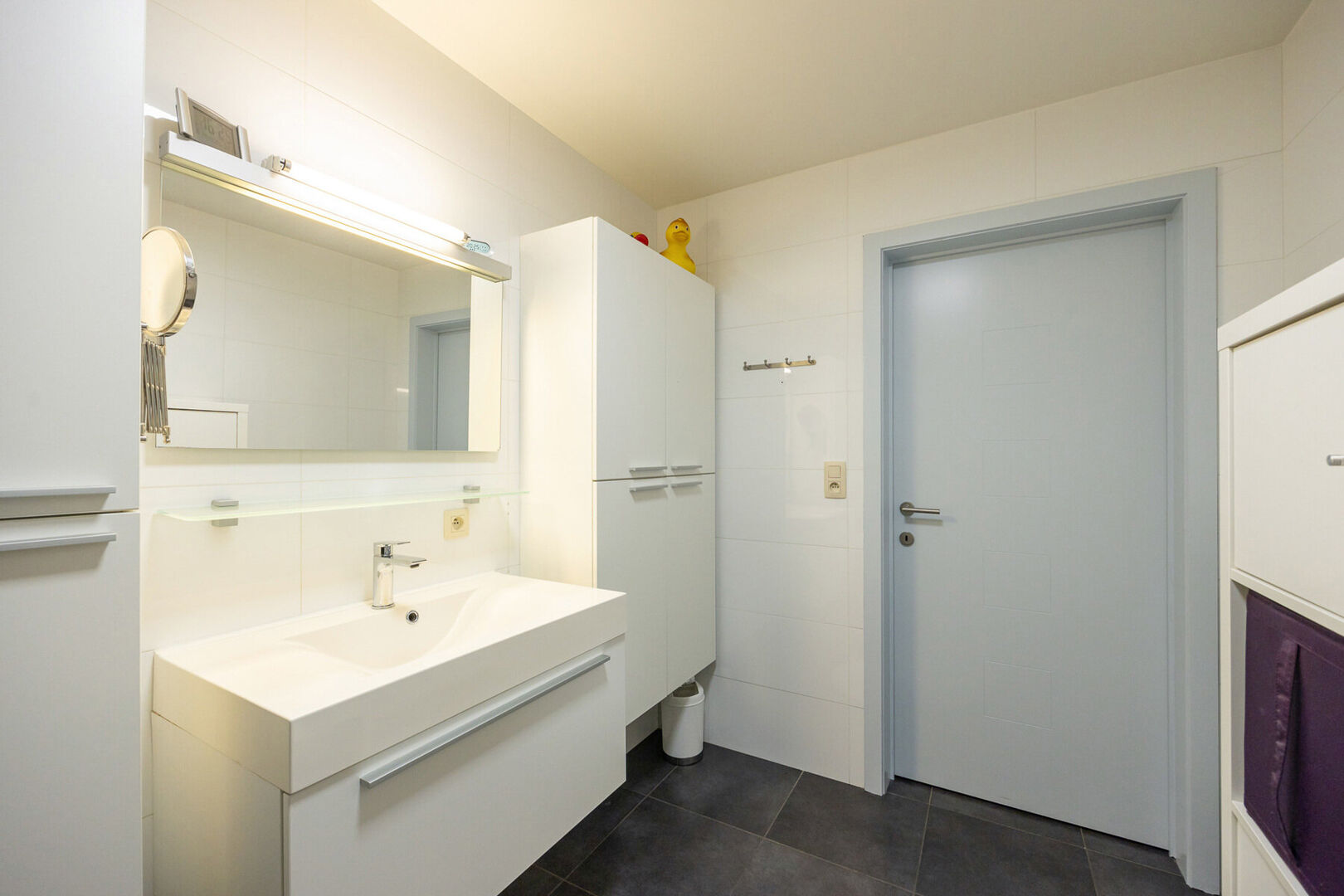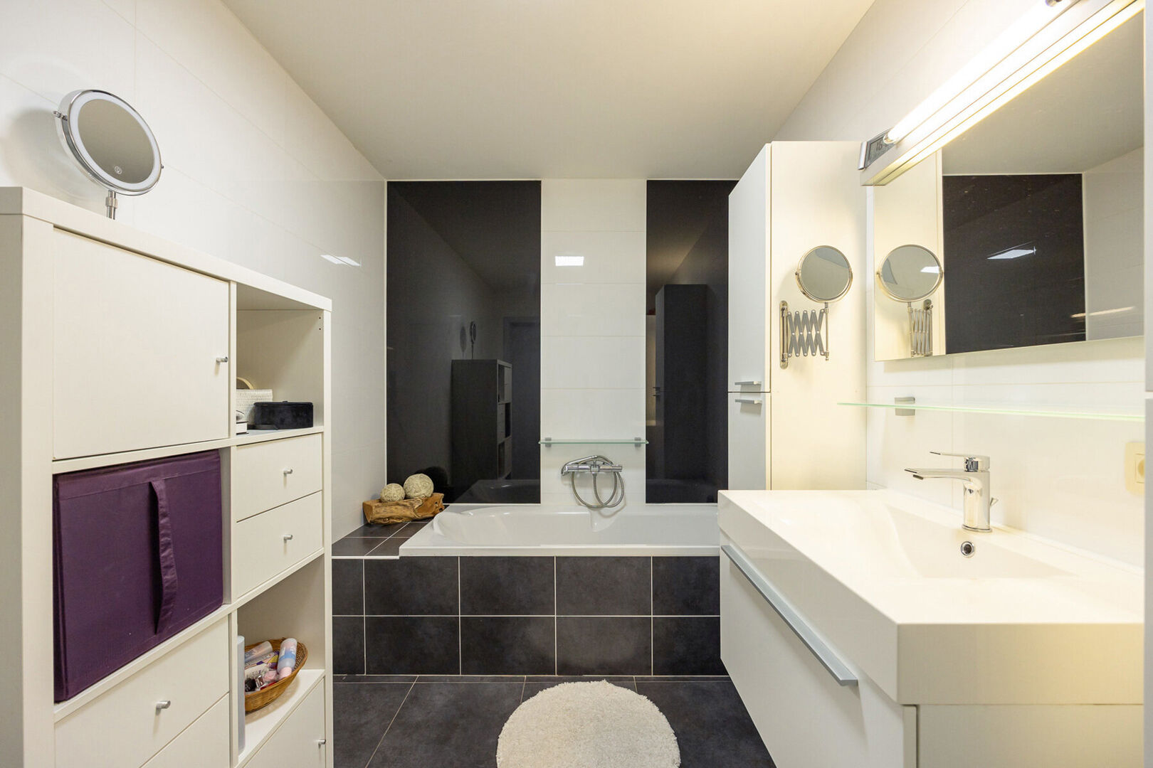 Via de trap in de leefruimte bereik je de tweede verdieping. Hier vinden we een eerste ruime slaapkamer met dressing en een tweede slaapkamer. Bovendien vind je er nog een ingerichte badkamer met ligbad, apart toilet en berging/wasplaats terug.