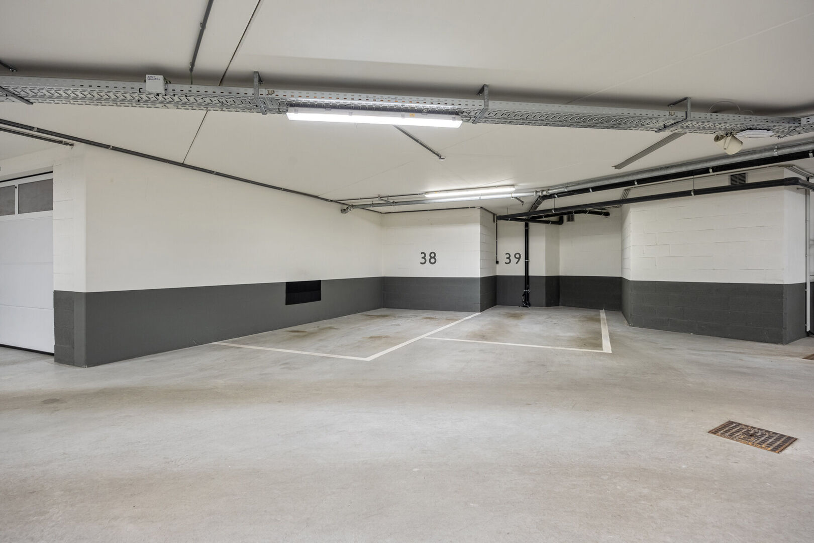 Optioneel worden er 2 uiterst ruime ondergrondse autostandplaatsen aangeboden, waar men zeer comfortabel in parkeert.