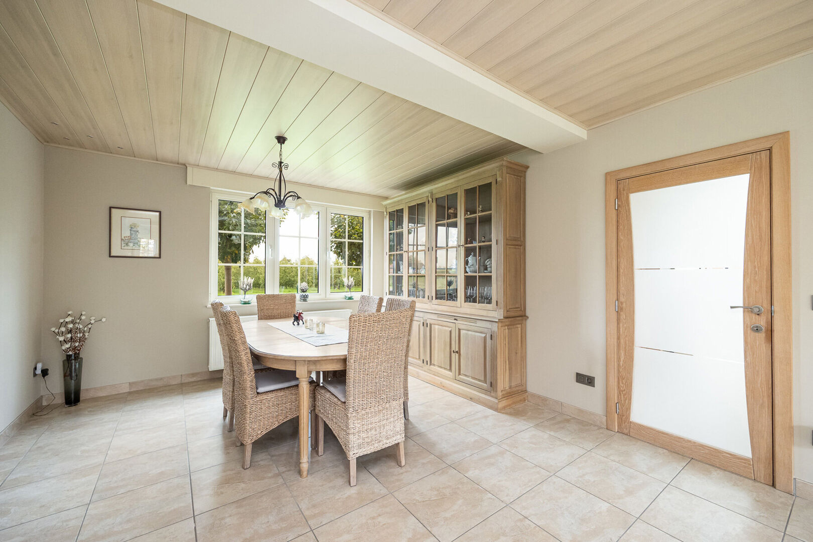 Te midden van de boomgaarden en landerijen van Alken bevindt zich deze ruime en lichtrijke woning op bijna één hectare grond. Hier woon je in een oase van rust en natuur, met alle moderne comfort binnen handbereik. De woning, met een bewoonbare oppervlakte van ongeveer 220 m², werd doorheen de jaren zorgvuldig onderhouden en voorzien van talrijke vernieuwingen. Grote raampartijen zorgen voor een overvloed aan natuurlijk licht en bieden een adembenemend uitzicht over het omliggende landschap.