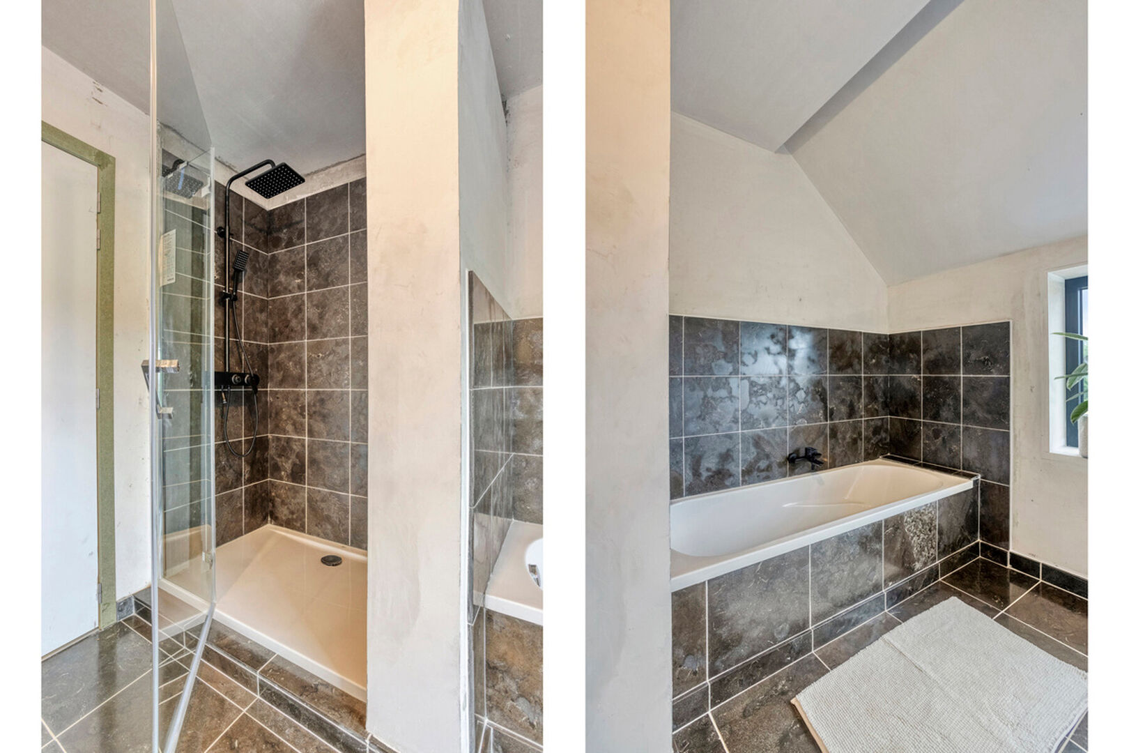 Op de eerste verdieping tref je de nachthal, 3 ruime slaapkamers, een toilet en twee badkamers. De nachthal geeft via een uittrektrap toegang tot de tweede- / zolderverdieping. Deze niet afgewerkte zolderverdieping biedt plaats aan een mogelijk 4 de slaapkamer.