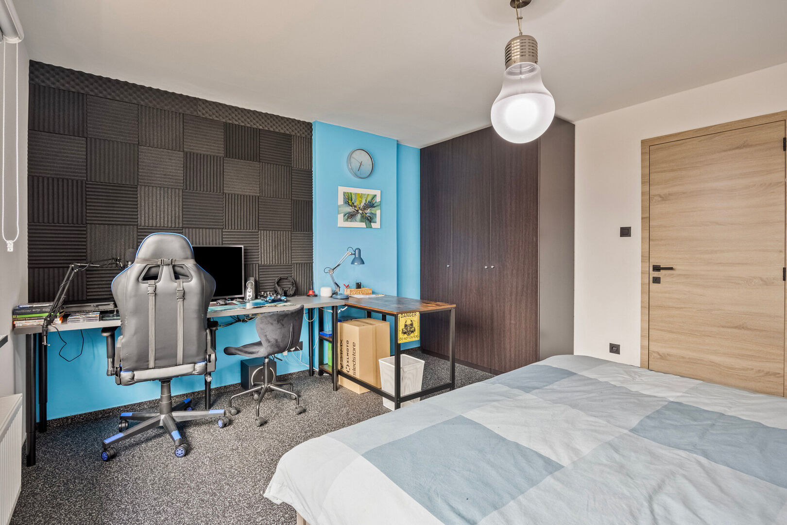 Via de met natuursteen beklede trap betreed je de eerste verdieping. Hier bevindt zich een ruime nachthal met de mogelijkheid om in de toekomst vrij eenvoudig een vaste trap naar de zolderverdieping te voorzien. Daarnaast werd de aanzet reeds gegeven voor de installatie van een apart toilet op deze verdieping. Daarnaast tref je hier drie zeer ruime slaapkamers (22 m2, 20 m2 en 16 m2). De zolderverdieping zou op termijn dus ook verder kunnen worden ingericht en is hoog genoeg voor het creëren van (een) extra slaapkamer(s).